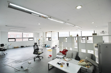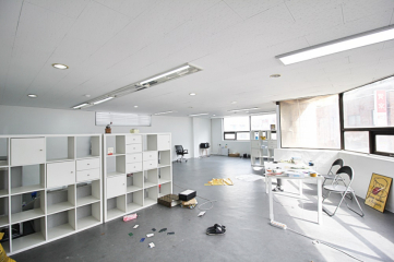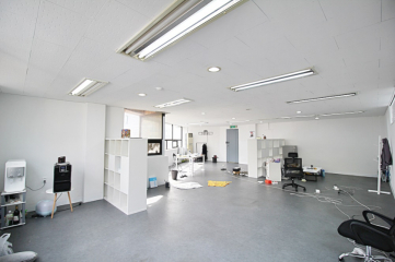 : 채광이 정말 좋은 전체적 화이트톤의 오픈홀 구조 사무실