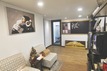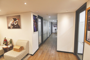 - 로비 + 독립룸 3개 + 회의실 + 연습실(스튜디오)