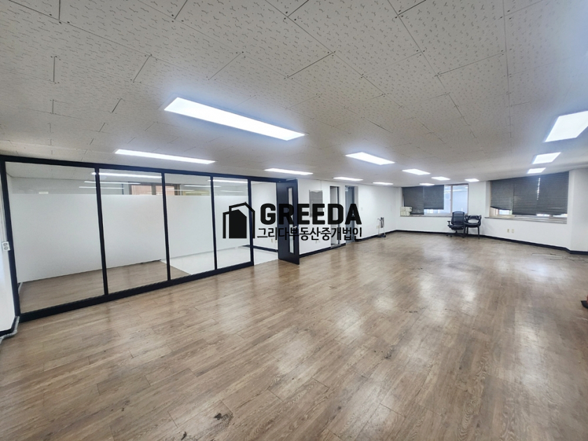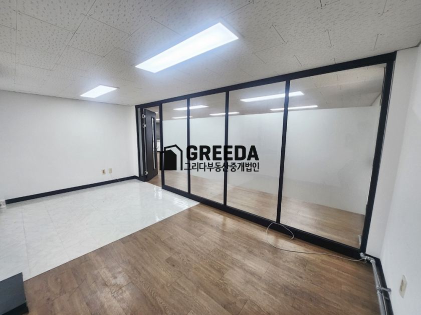 내부룸 유리 인테리어로 구분된 사무실.